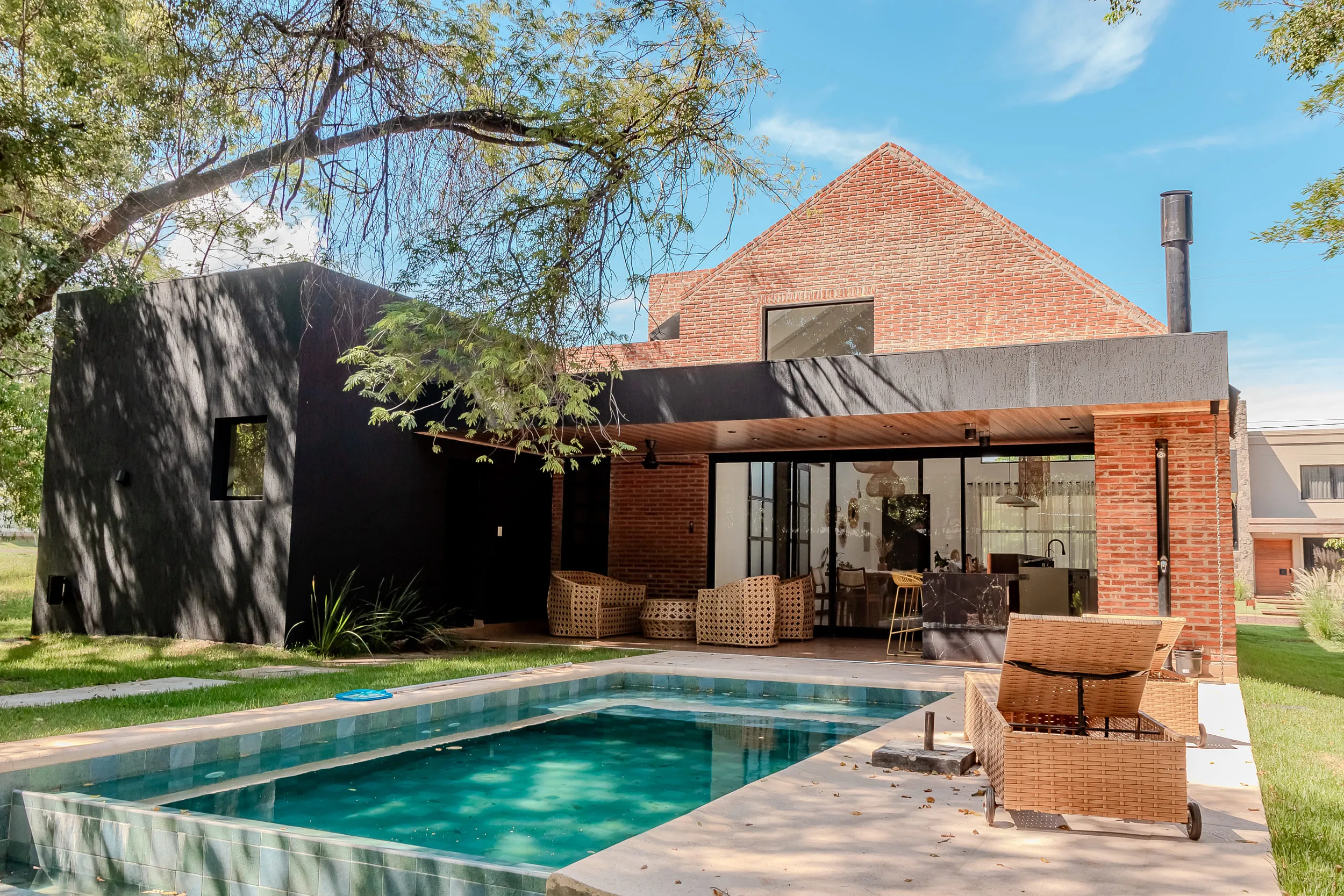 Esta vivienda fue desarrollada en un entorno privilegiado, respetando al máximo la vegetación y la integración con el paisaje natural. Su diseño combina líneas modernas con materiales tradicionales como ladrillo visto, generando un equilibrio entre lo contemporáneo y lo cálido.